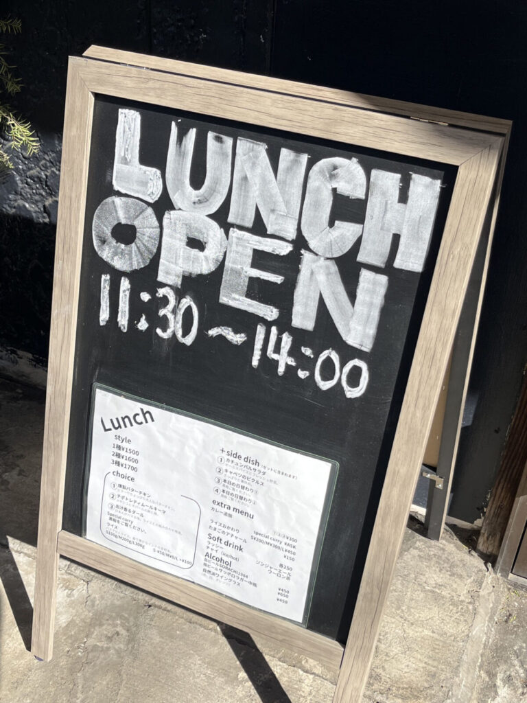お昼時にお店に行ってみると・・・「LUNCH OPEN」と書かれた看板を発見!