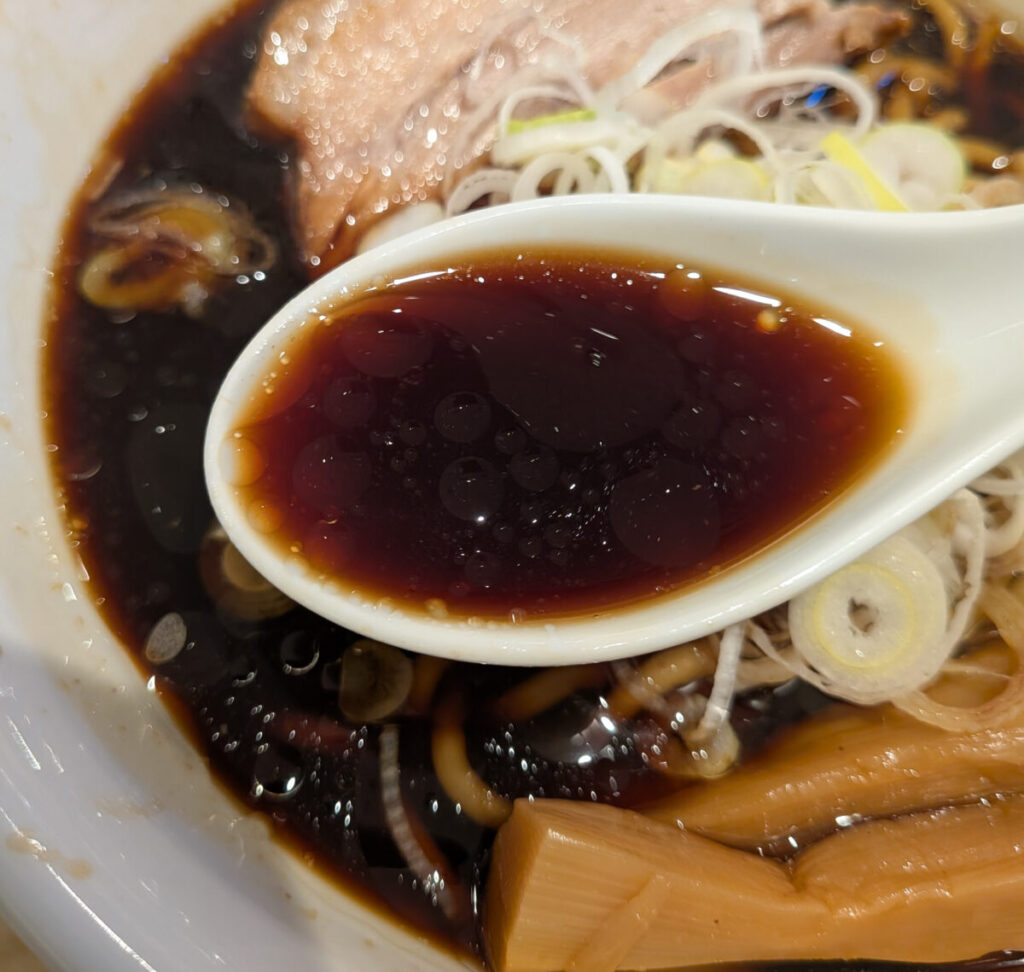 おっほー!けっこう甘めな味わいで存在感のある醤油スープ。