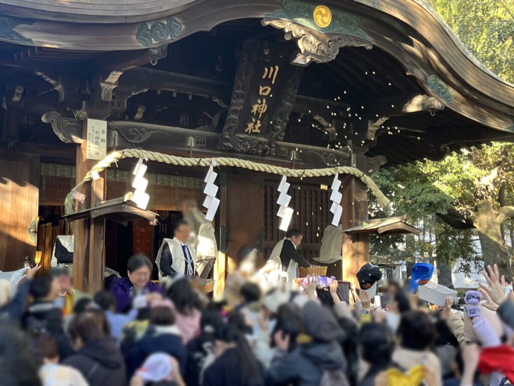 川口神社で開催された「豆撒き行事」の様子を見ていましたよ!