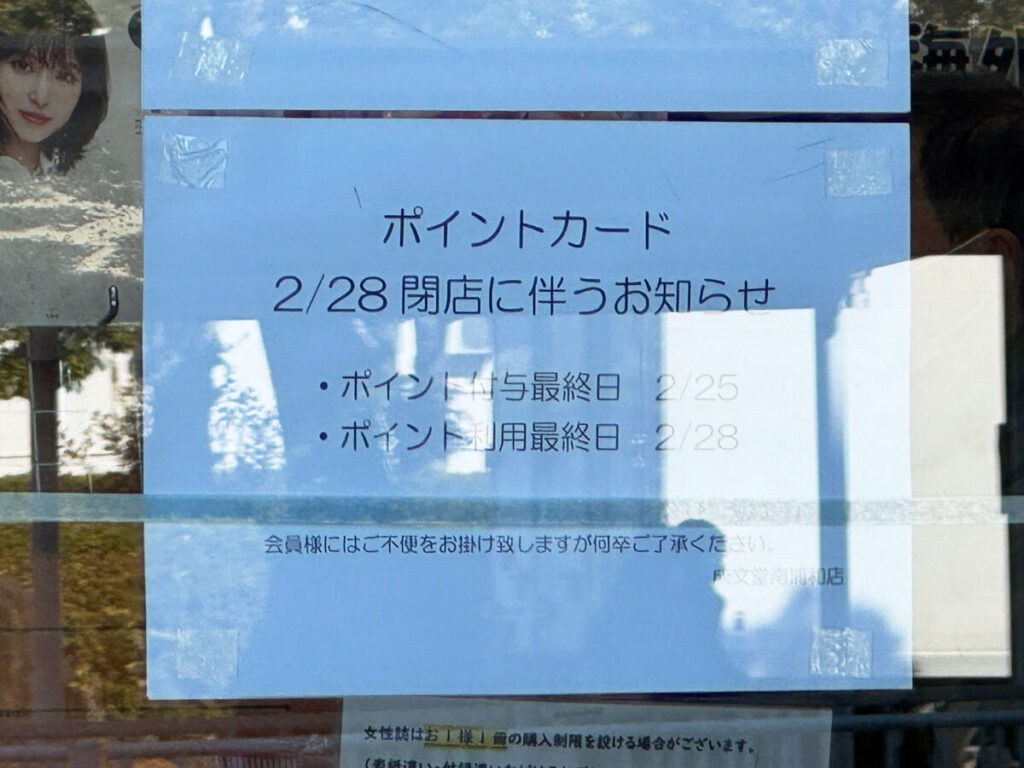 南浦和駅西口を出てすぐのところにある本屋さん「成文堂 南浦和店」が、2月28日をもって閉店するみたい。店頭にお知らせが出ていました。
