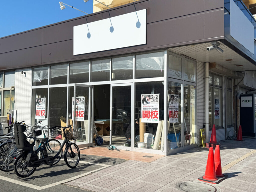 店頭に「3/2 OPEN 個別指導の専門塾 開校」というポスターが掲示されていましたよ!