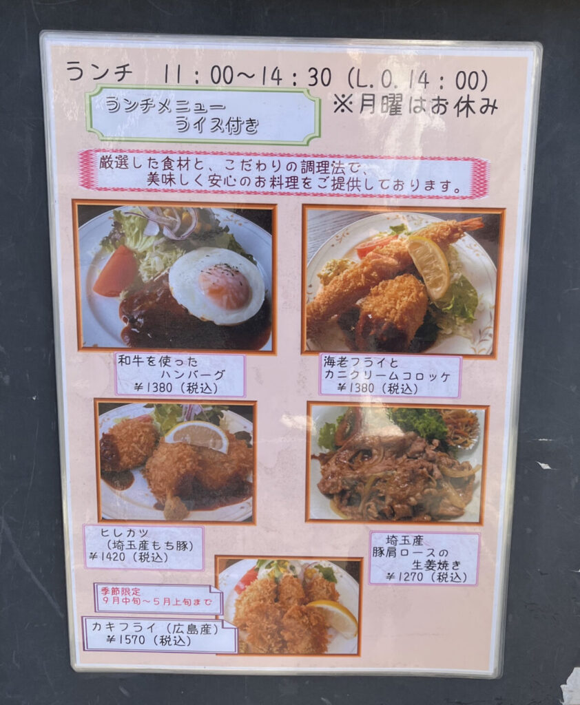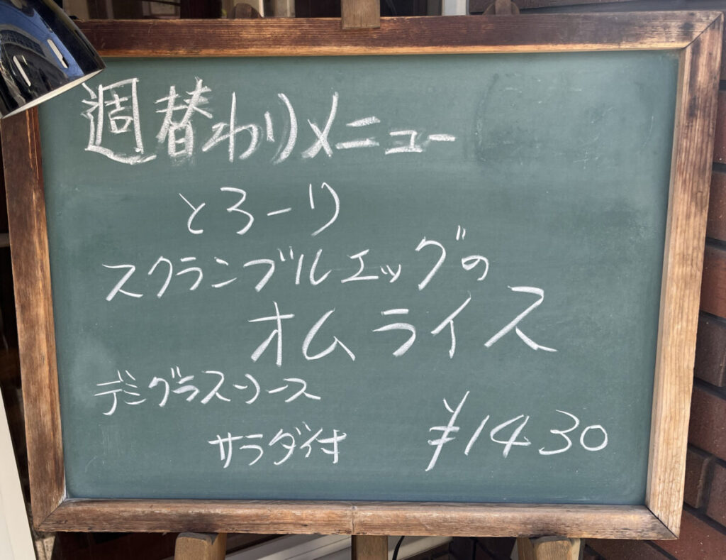 お昼時にお店に行ってみると、店頭にメニューが出ていましたよ!