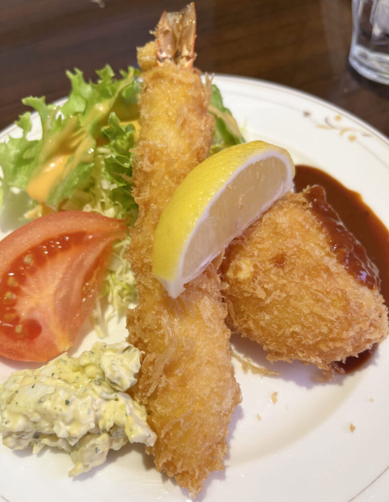 今回は「海老フライとカニクリームコロッケ(1,380円)」をチョイス!