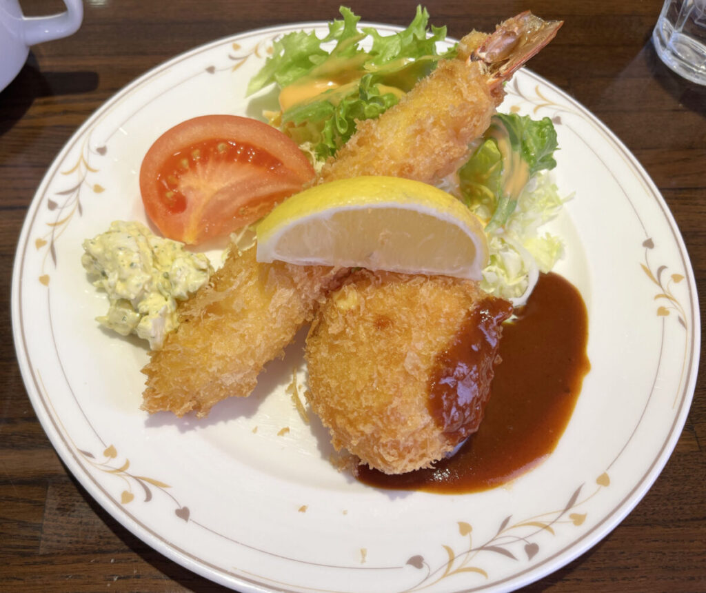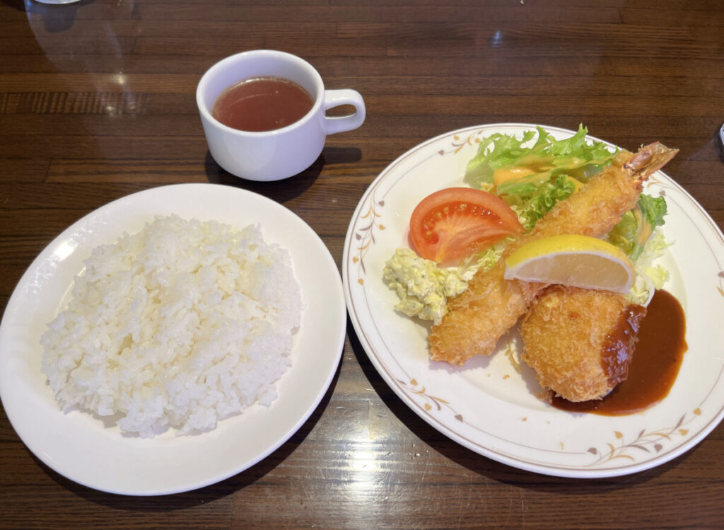 飯塚にある洋食レストラン「ル・マルシェ」でランチ!おっきな海老フライと、とろっとろなカニクリームコロッケを堪能してきました♪