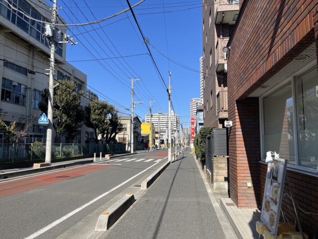 お店を背にして右はこんな感じ。進むと「共生幼稚園」があり、さらに行くと「川口市立西公民館」があります。