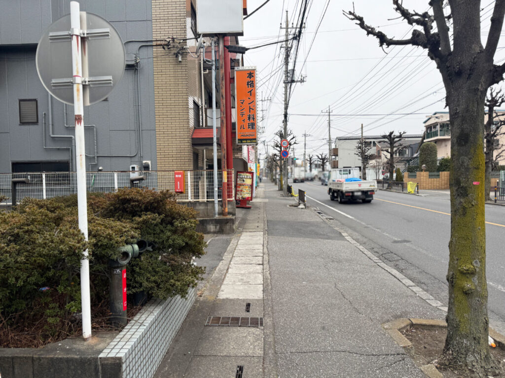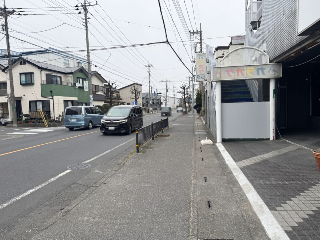 お店を背にして右へ進んでいくと南鳩ヶ谷駅方面。「ローソン」や「セブンイレブン」、「炭火焼肉 安楽亭 中居店」などがあります。