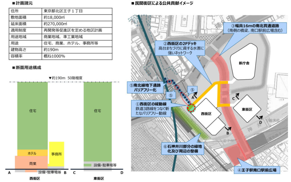 王子駅前のサンスクエア周辺は再開発が計画されているのですが、1月下旬に開催された王子共創会議の資料でその建築物の概要が記載されてました。