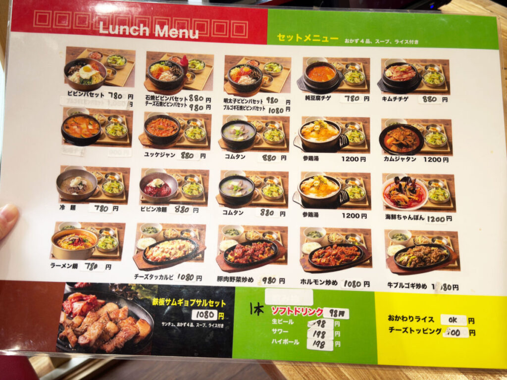 ビビンバやチゲ、鉄板料理などどれも美味しそう〜!