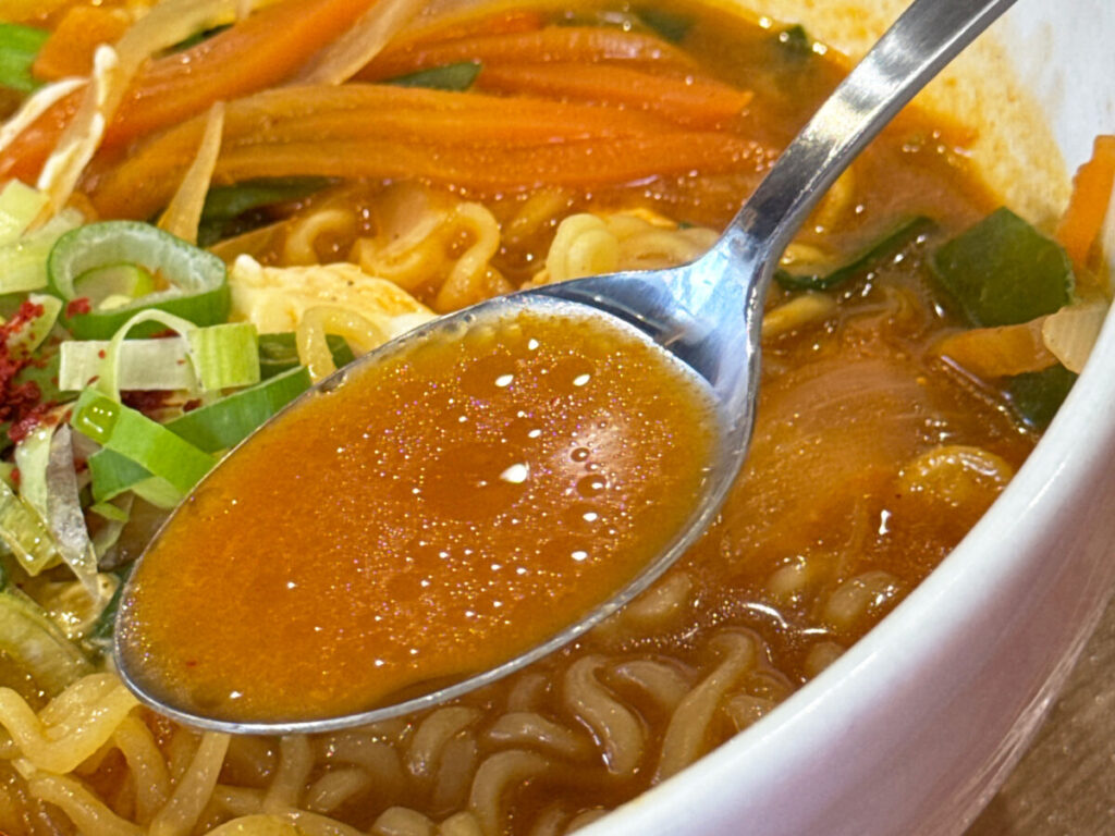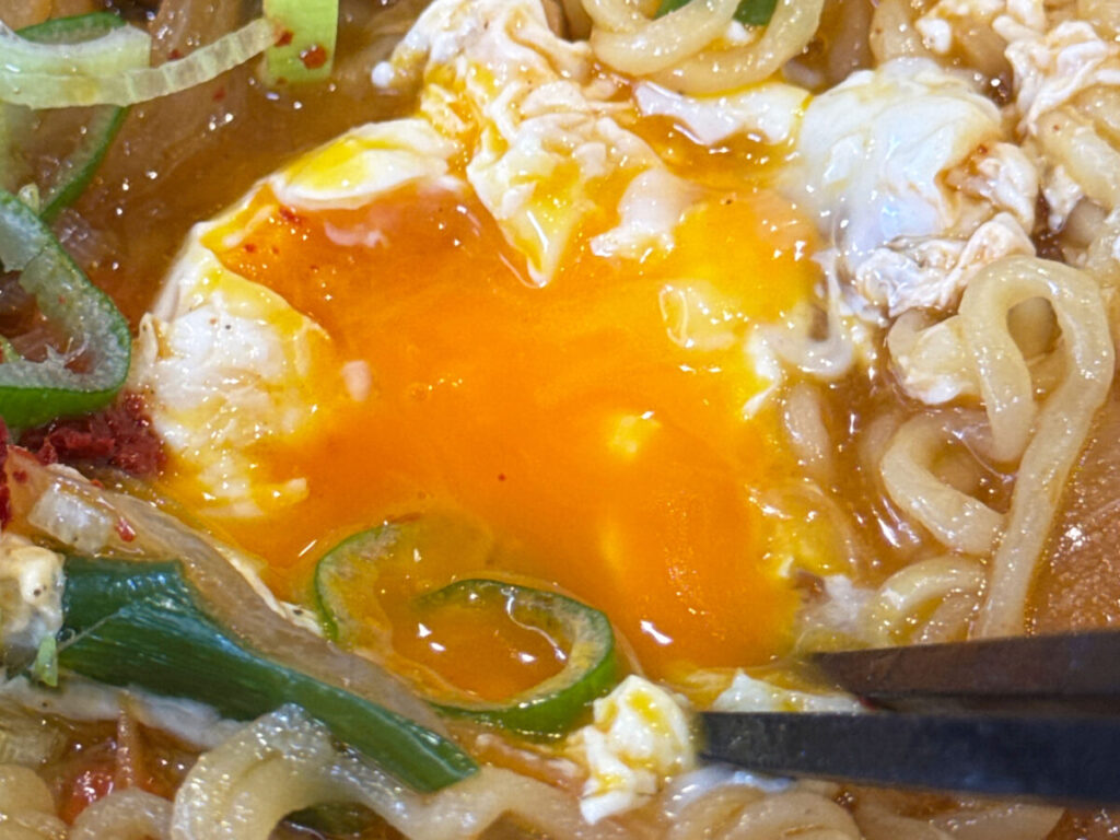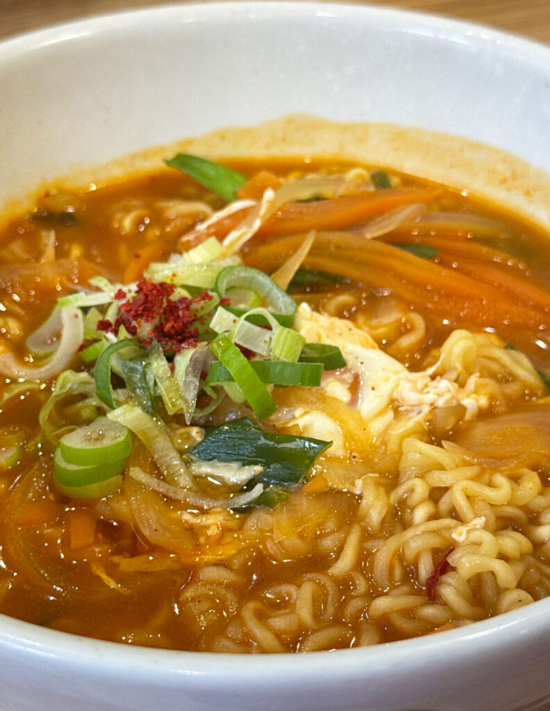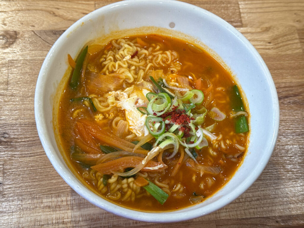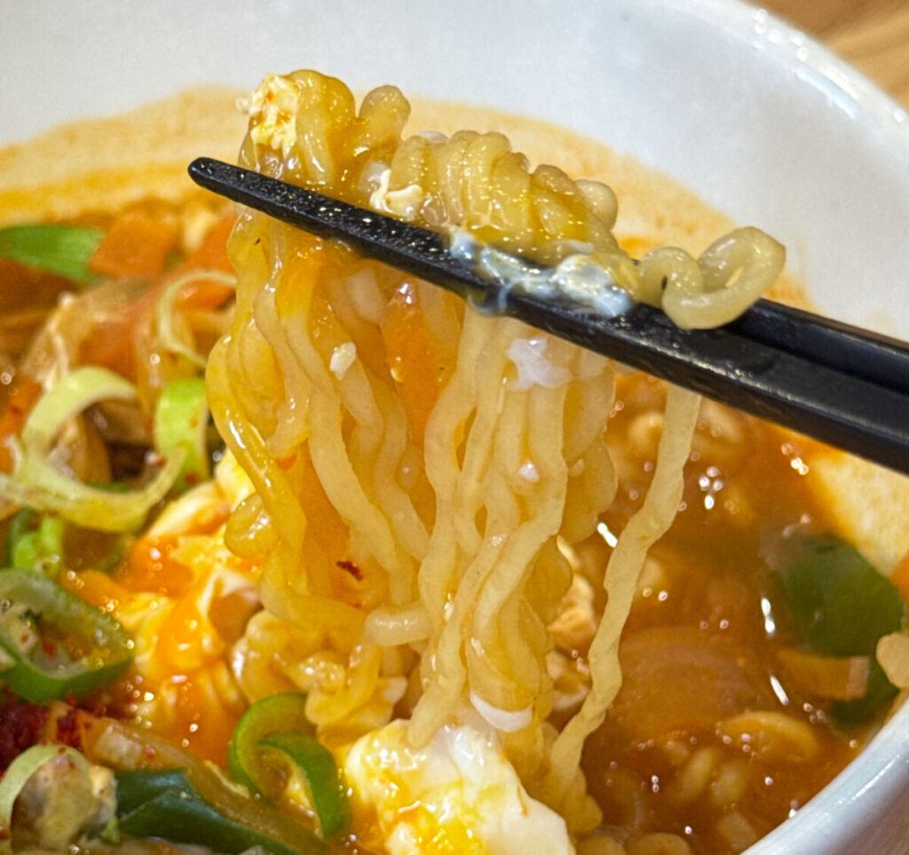 おっ!これはきっと”辛ラーメン”!モッチモチ麺でうまい!