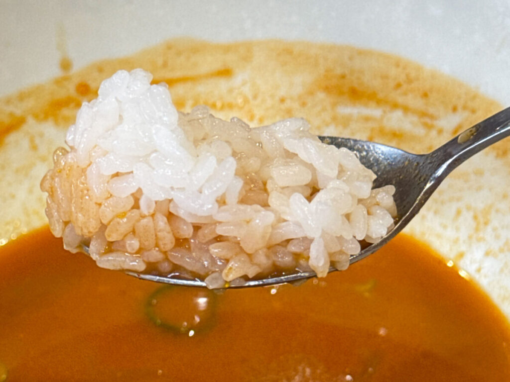 一気に食べすすめて、最後はご飯をスープに浸してぱくり。
