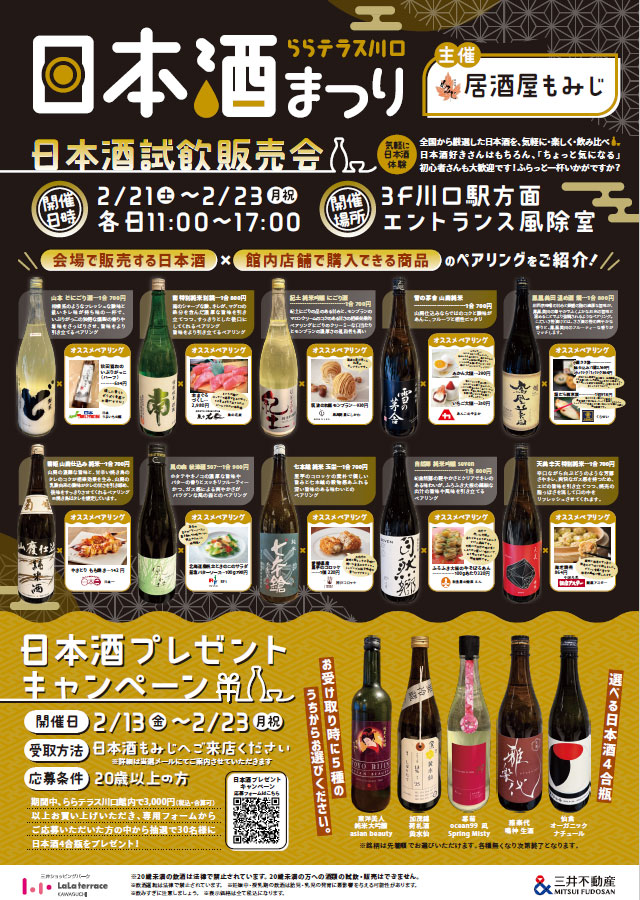2月21日(土)〜23日(月・祝)には、日本酒試飲販売会。