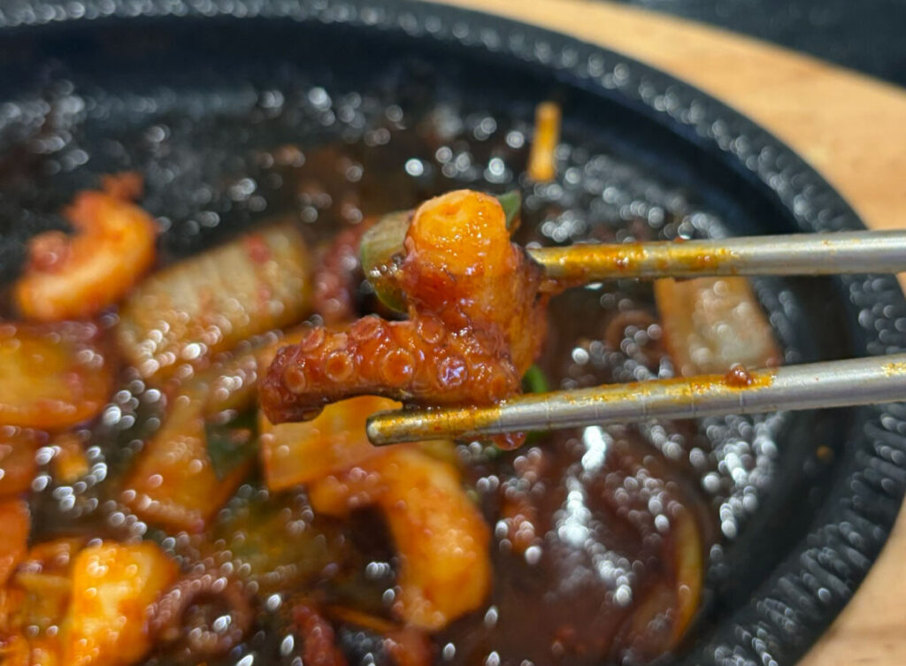 今回は、南浦和の「韓国料理 へばらぎ」で『タコ炒め定食』を食べてきました!ジュージュー鉄板で提供されるタコ炒めは、プリっとコリっと旨辛な一品でしたよ♪