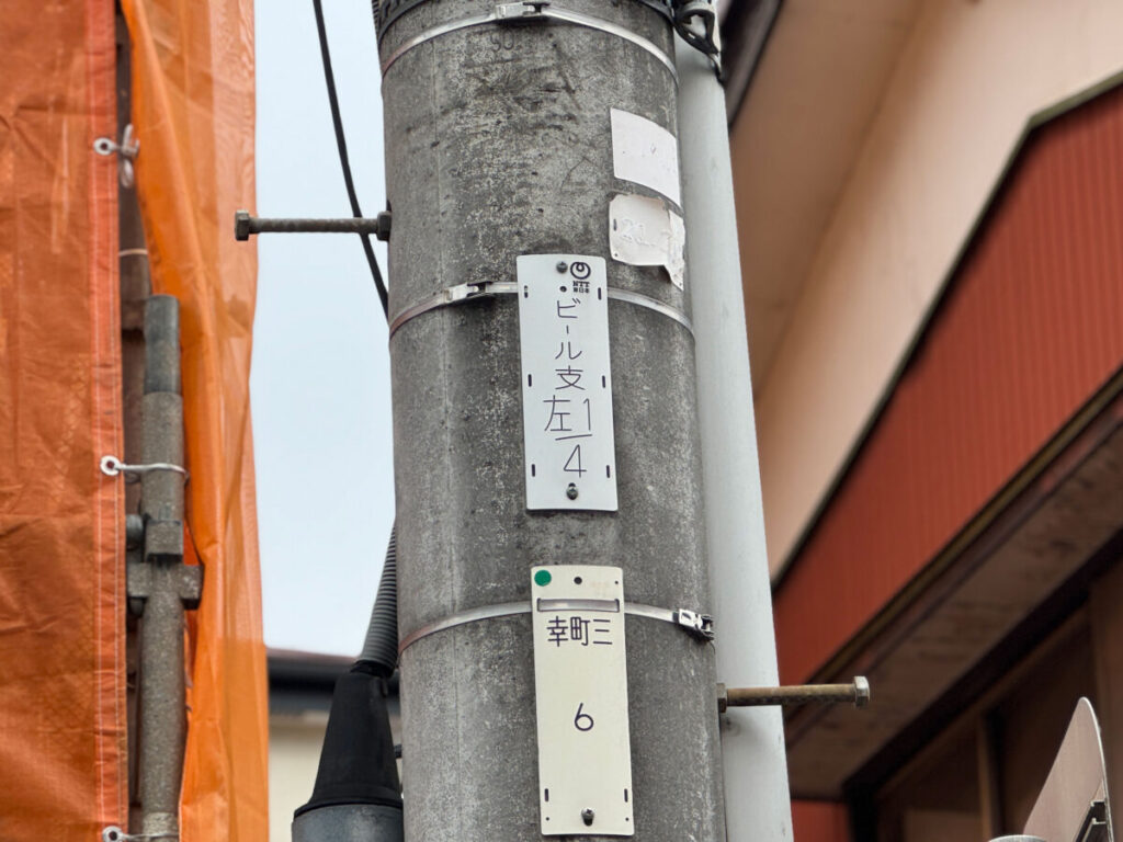 実際に電柱を見てみると、こんな感じでプレートのような標識が付いているんです!