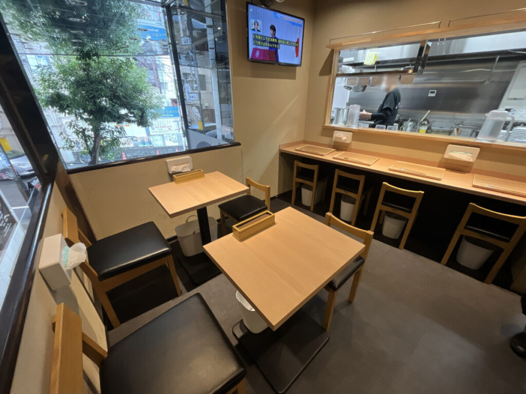 入って左側にはテーブルとカウンター席。