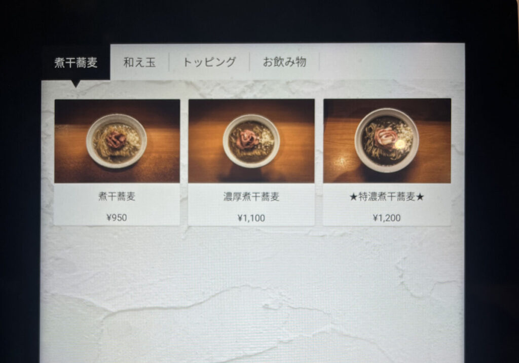 煮干・濃厚煮干・特製煮干の3種類!