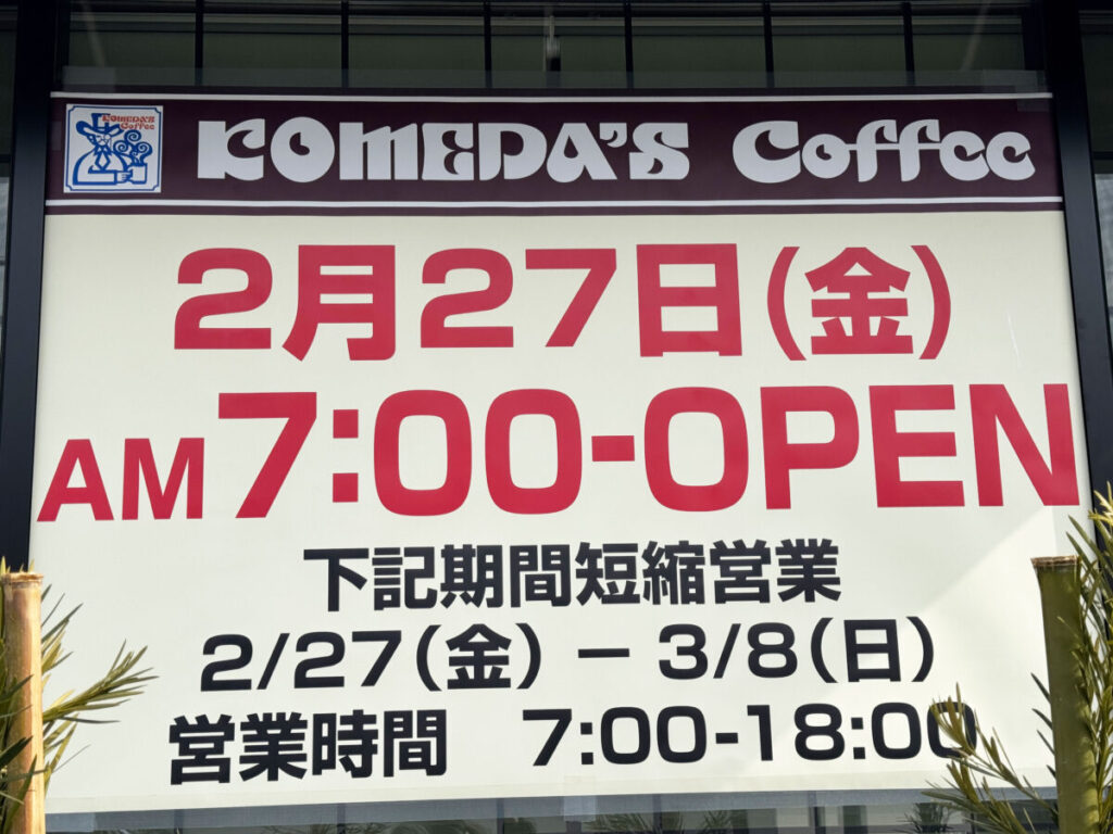 蕨市役所の近くに「珈琲所コメダ珈琲店 蕨宿店」が、2月27日(金)新オープンするみたい!店頭にお知らせが出ていましたよ。