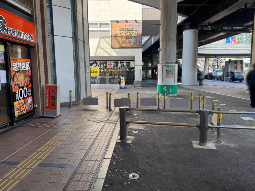 左です。すぐ隣に「吉野家」があり、その先に「川口駅」があります。
