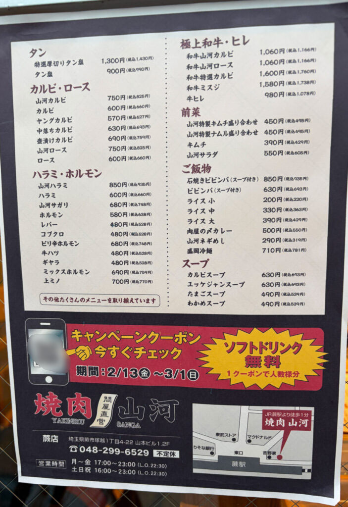 蕨駅東口すぐに、肉問屋直営「焼肉 山河」が2月13日に新オープンしたみたい!