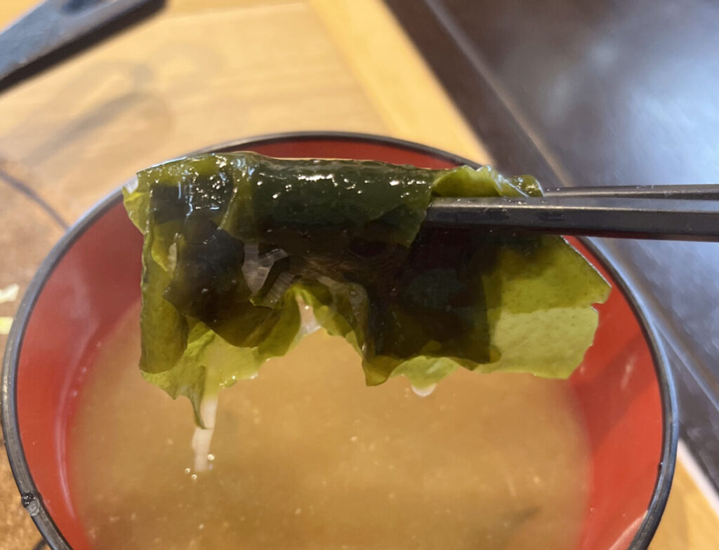 さてまずは、ワカメたっぷりお味噌汁からいただきます。