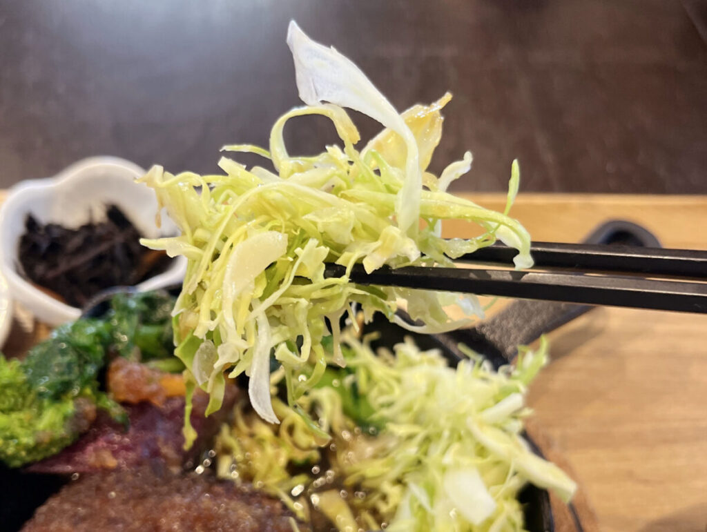 う~ん!肉汁と玉ねぎソースをまとったキャベツ、一段とうまいぞ!
