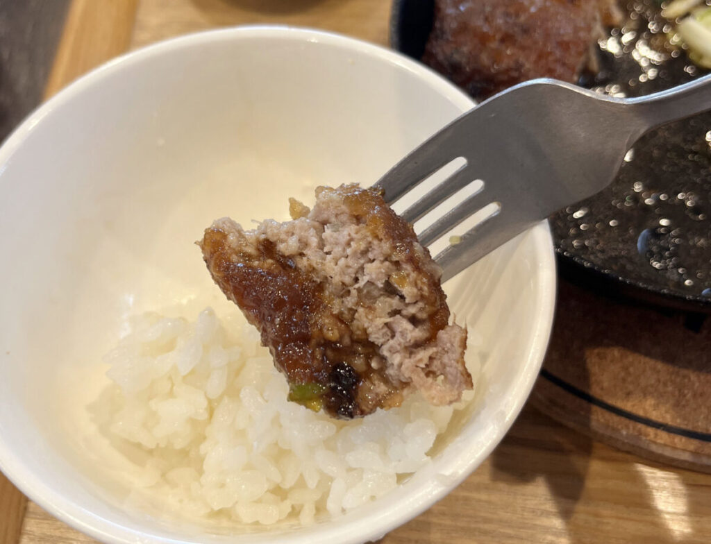 ん~!口の中全体に肉汁が行きわたってゆく・・・(*´ω`*)