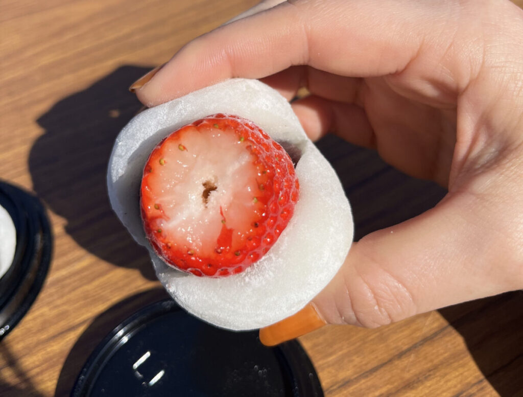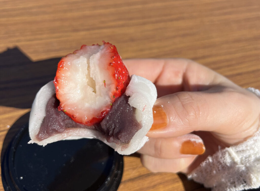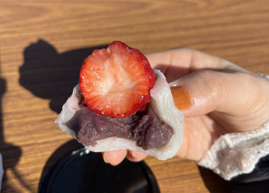 苺のヘタの方まで噛むと酸味もあって、こしあんの甘さとのバランスが絶妙です!