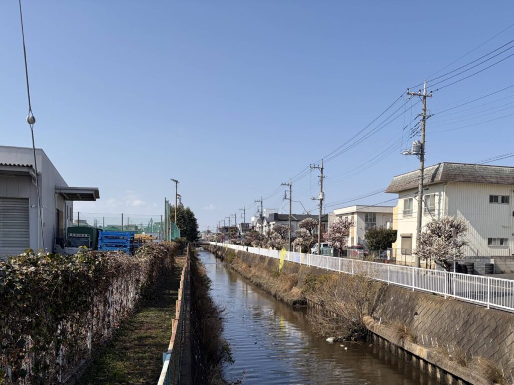 カスミとコーナンを左に見ながらにそのまま進むと、川口工業高校の裏手にある竪川が見えてきます。