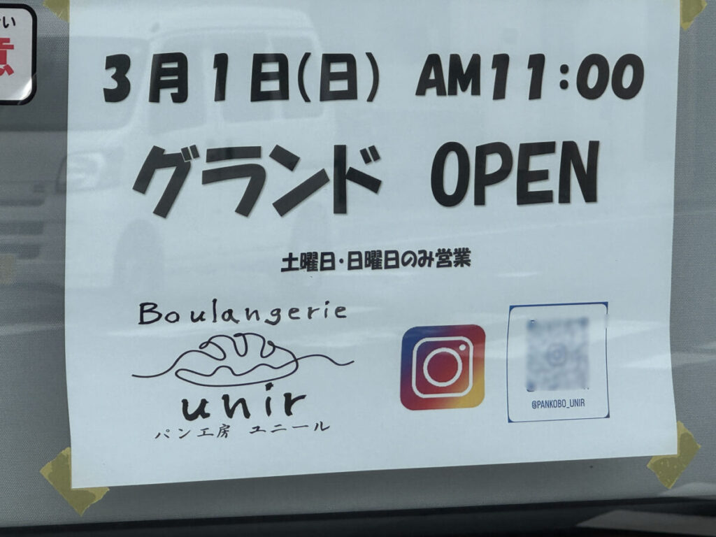 以前から川マガでお伝えしている、元郷にあったパン屋さん「クレールナカムラ」の跡地ですが、ついに『パン工房 unir(ユニール)』が3月1日に新オープンするみたい!