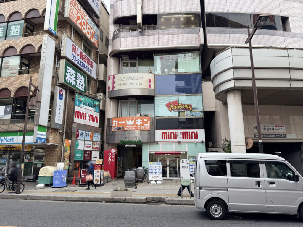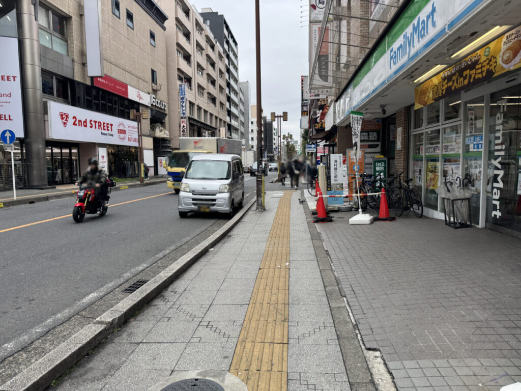 ビル入り口を背にして右はこんな感じ。すぐに「ファミリーマート」や「セカンドストリート」があります。