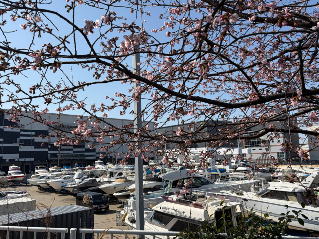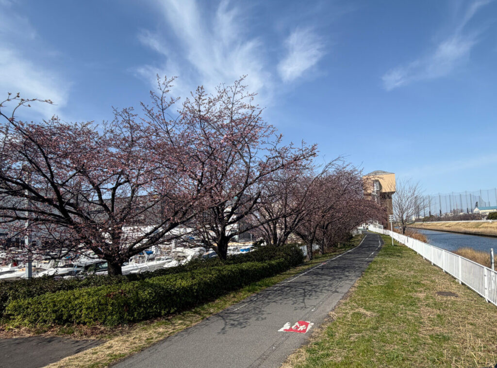 芝川マリーナ横の桜が咲き始めていました。