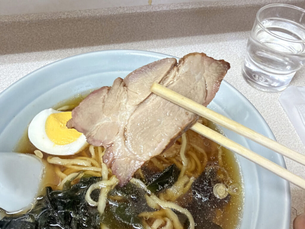 からの、ラーメンのチャーシューもぱくっと!