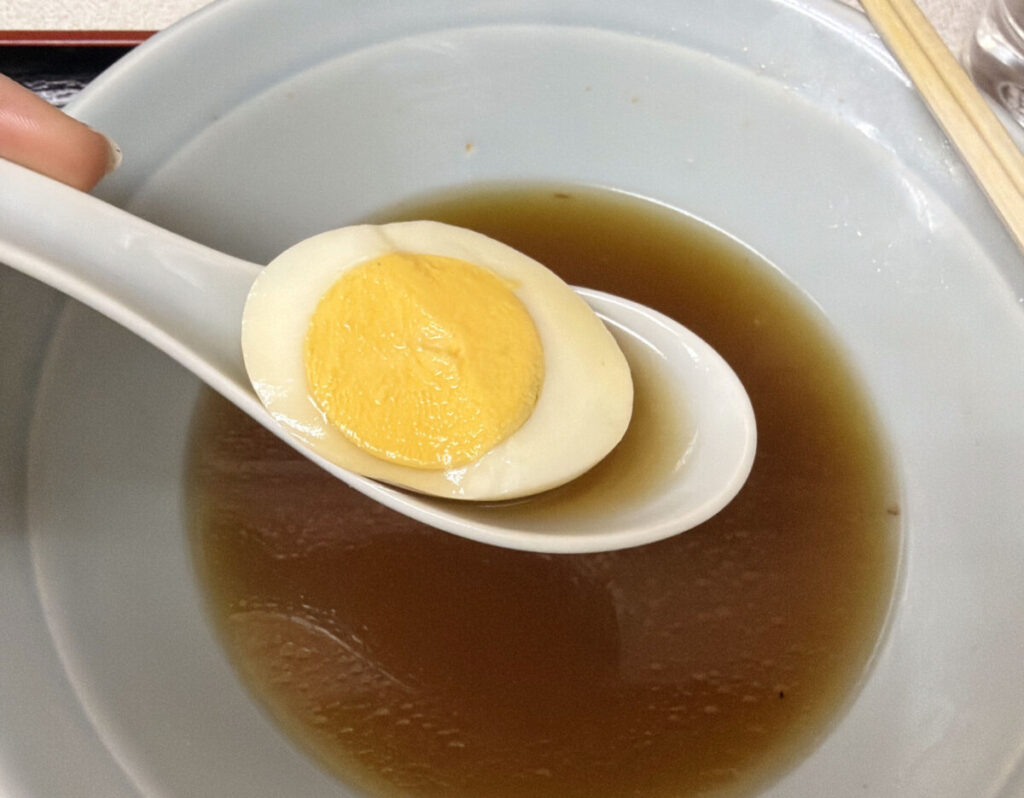 怒涛の勢いで麺を完食し、大事に取っておいたゆで卵をぱくっと一口で♪