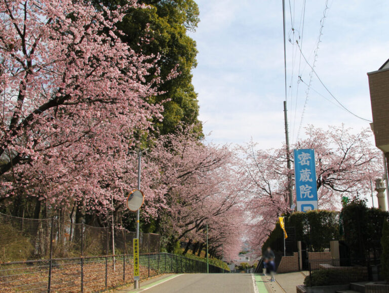 また、密蔵院のすぐそばの安行原自然の森沿いの坂道も素敵な桜並木なんですよ。