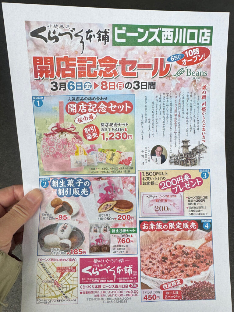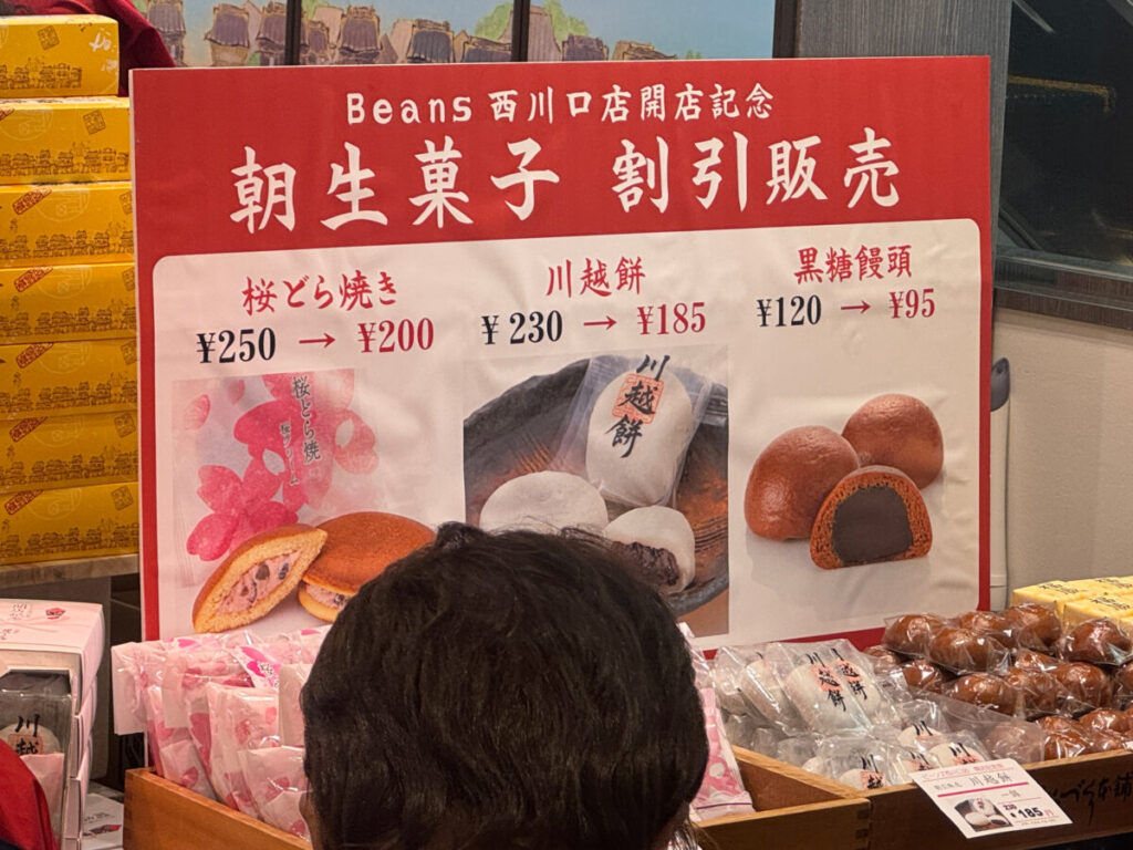 ビーンズ西川口店開店記念で、朝生菓子割引販売や、