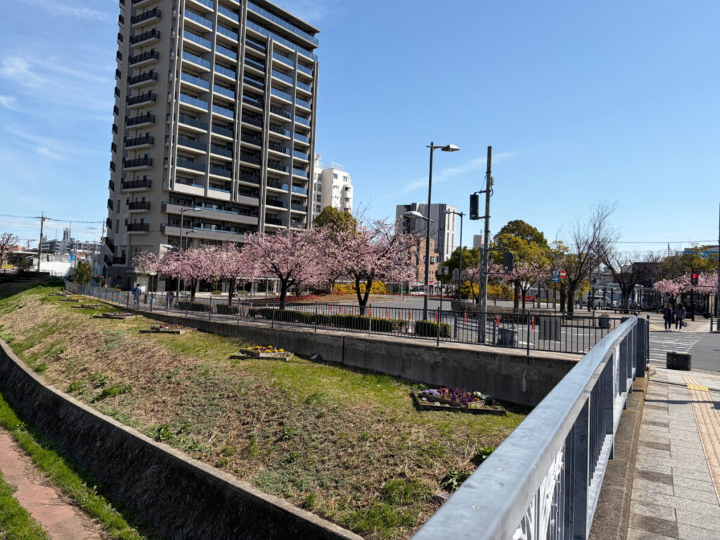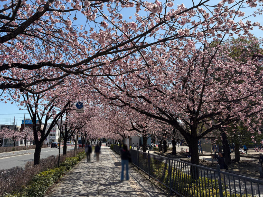 駅と反対側の歩道に桜のアーチを発見!