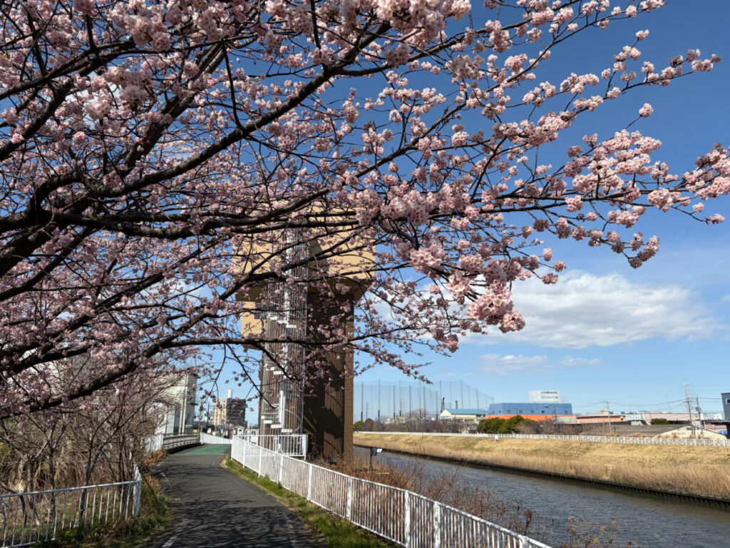 【川口市】芝川マリーナ横の桜がちょっとずつ開花してきてる。3/1の様子♪