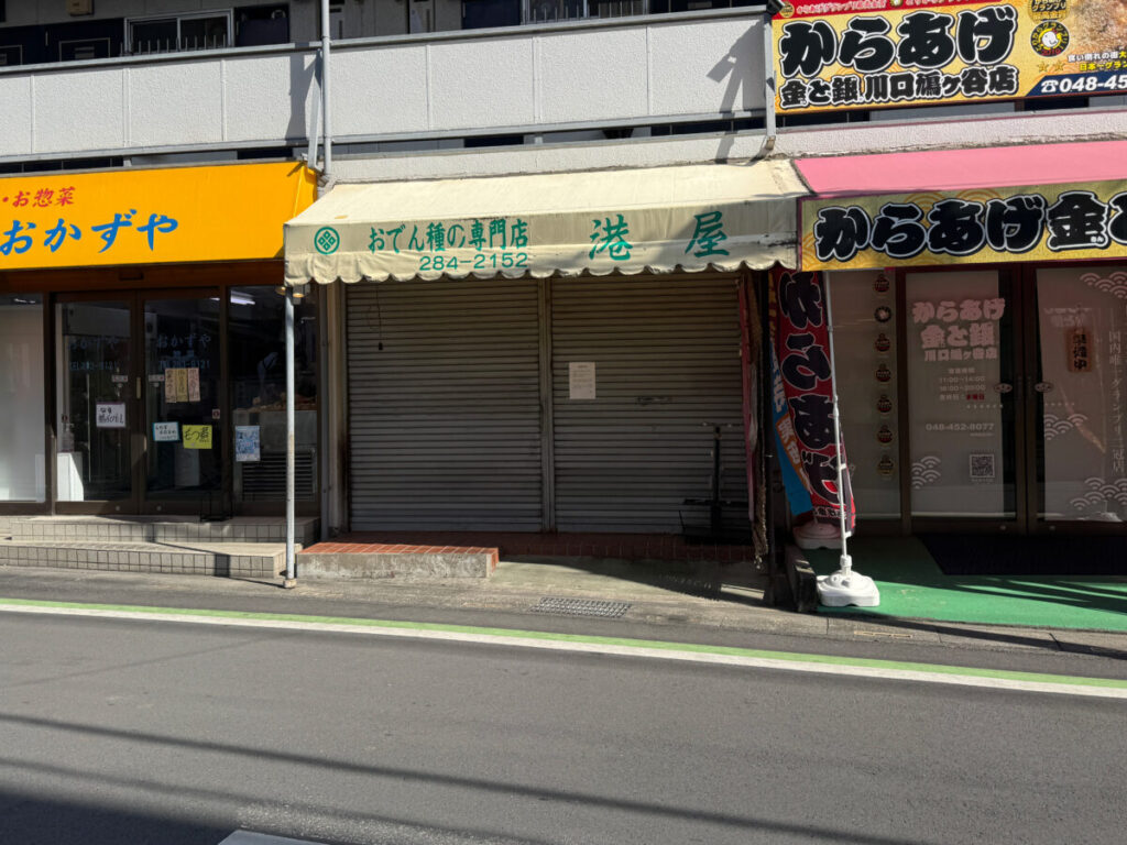 鳩ヶ谷「港屋」に閉店のお知らせ