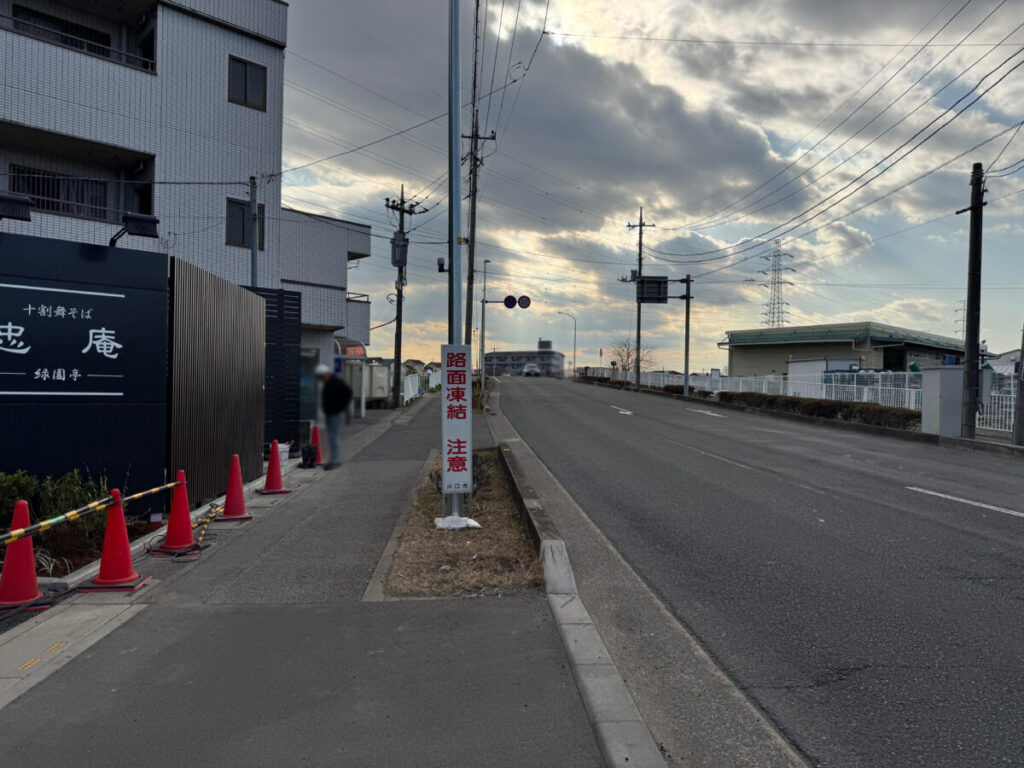 現在建設中の建物の右側、網代橋のふもとのほうに「十割舞そば 忠庵 ー緑園亭ー」という看板が付いていましたよ!