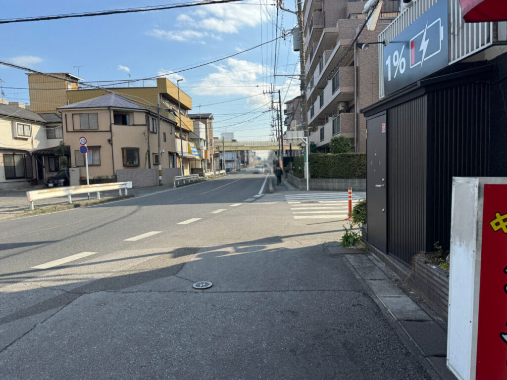 お店を背にして右はこちら。まっすぐ進んでいくと「北消防署上青木分署」や「青木信用金庫 北支店」などがあります。