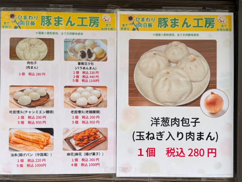 「向日葵豚まん工房」はテイクアウト専門店。メニューはこちら。