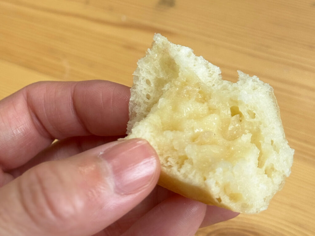 半分に割ってみると、むぎゅっとした弾力のある生地!ハリがあっておいしそう〜。