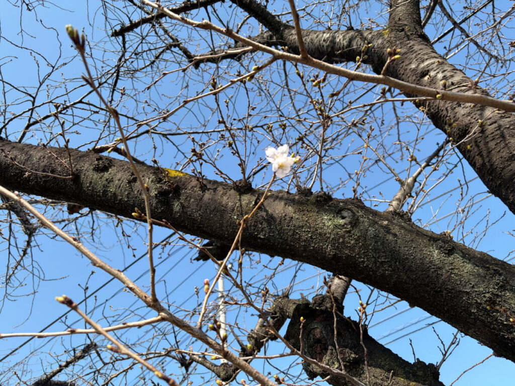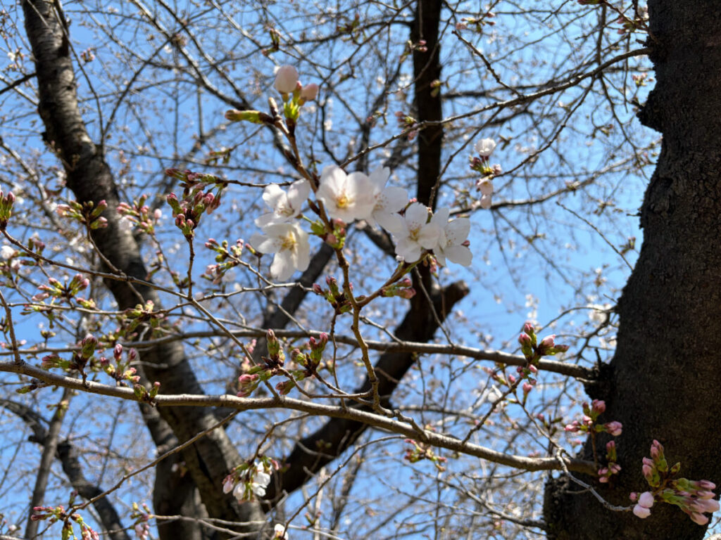 お、ちょろっと咲いてた!白くてこれぞソメイヨシノな感じ!