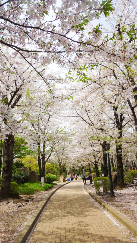毎年4月になるとソメイヨシノが満開になって一面ピンク色になる川口西公園。