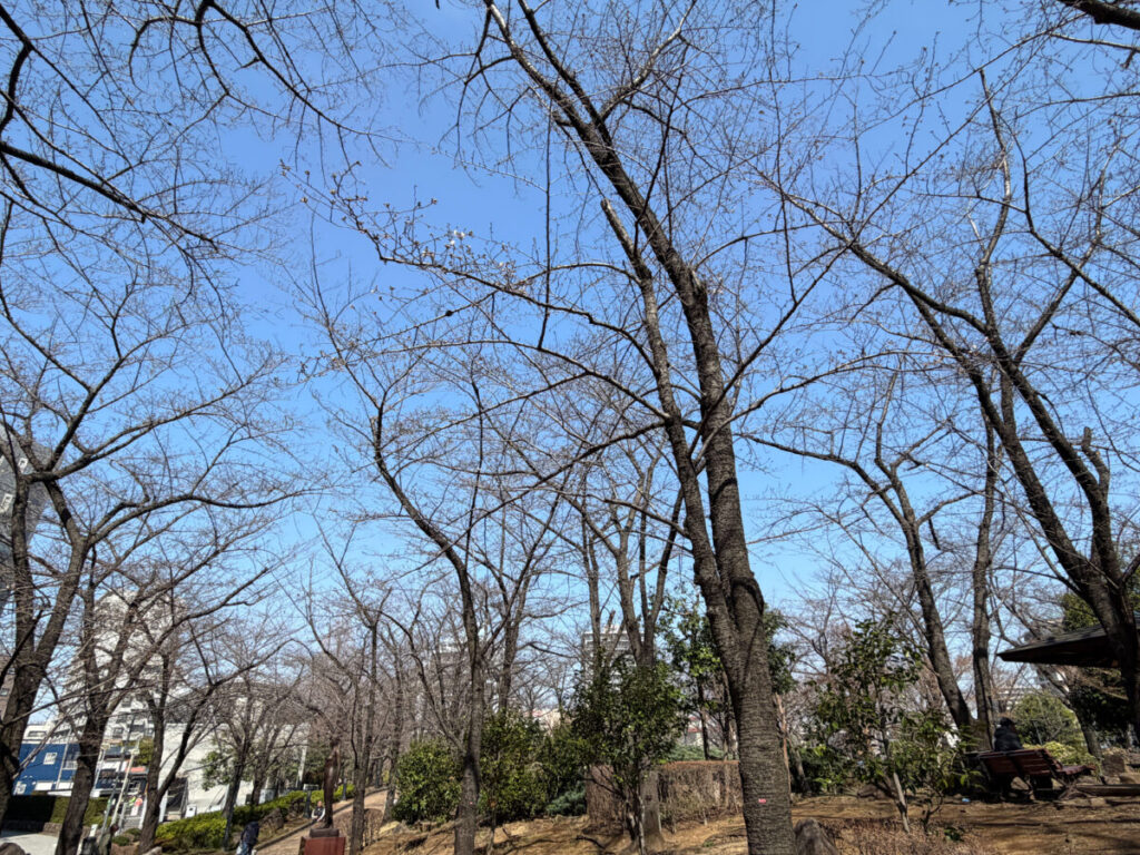 川口駅西口の川口西公園のソメイヨシノがちょっとずつ咲き始めています。3月21日の様子です。