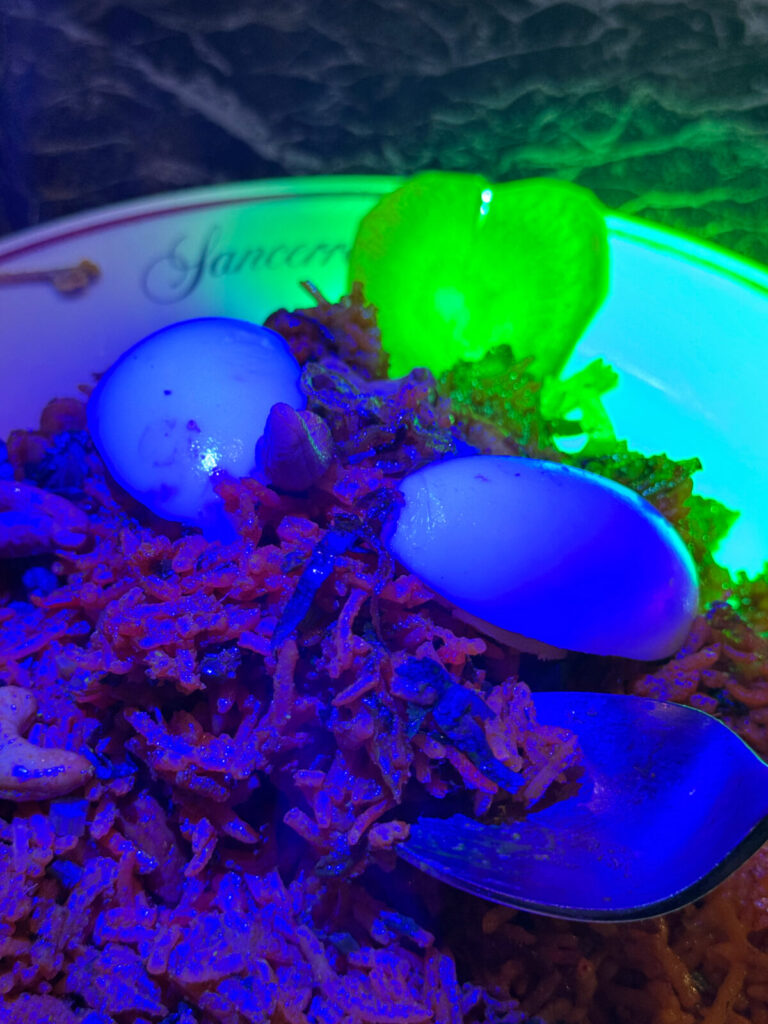 それにしても、この照明の中で食べるランチ、なかなかの非日常感。新鮮すぎてなんだか楽しくなってきちゃう。笑