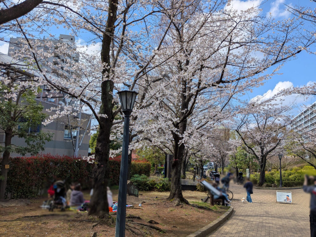 川口駅西口にある「川口西公園」の桜の様子を見てきたよ!3月27日の様子です。