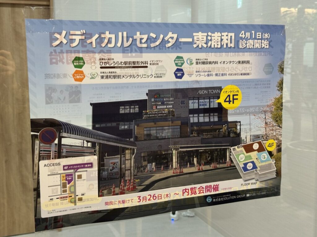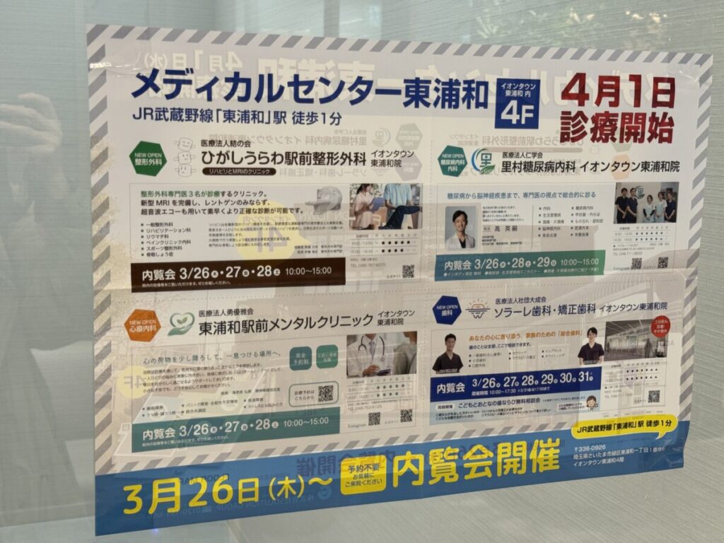 4階フロアは「メディカルセンター東浦和」という内科・整形外科・心療内科・歯科の各専門科が集結したクリニックモールが誕生!