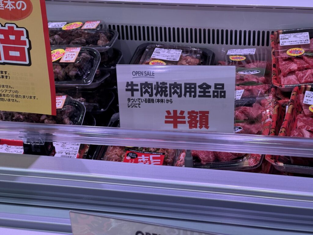 牛肉焼肉用全品半額だって!!これは買いだ!