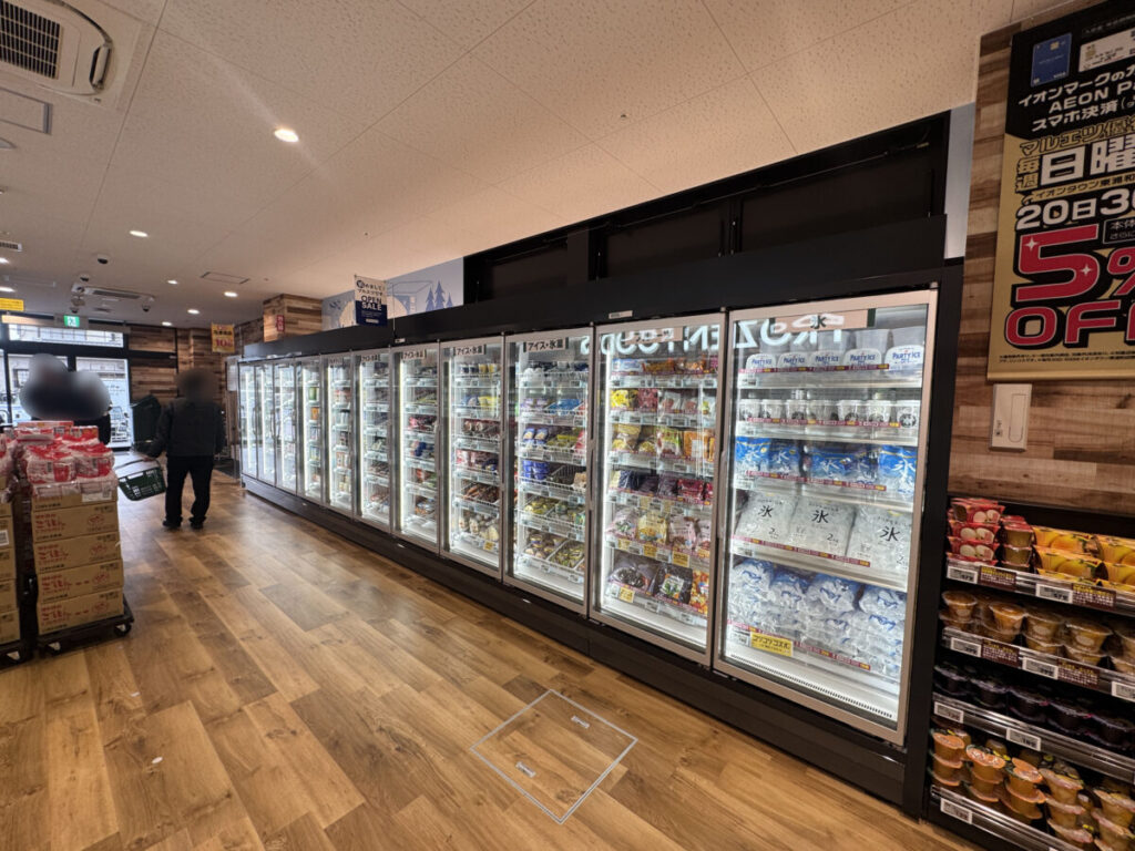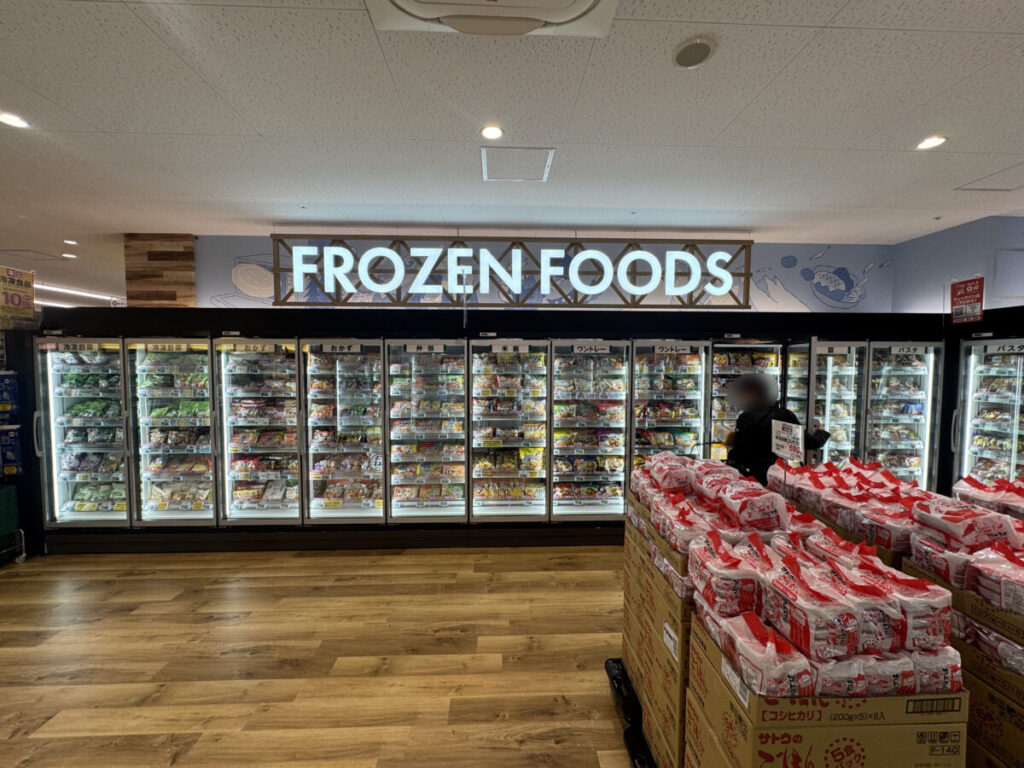 その反対側にはフローズンコーナー!冷凍食品がこちらもずら〜っと並んでいました。