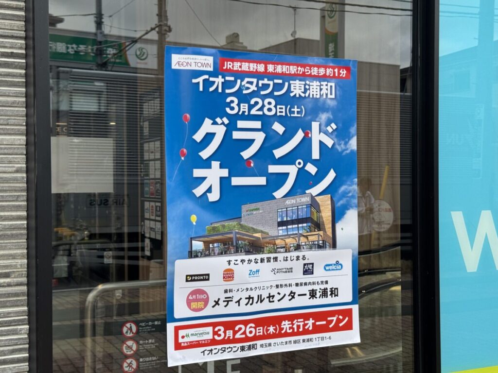 東浦和駅前に「イオンタウン東浦和」が3月28日(土)に新オープン!許可を得て、店内の様子を撮影させていただきましたよ!
